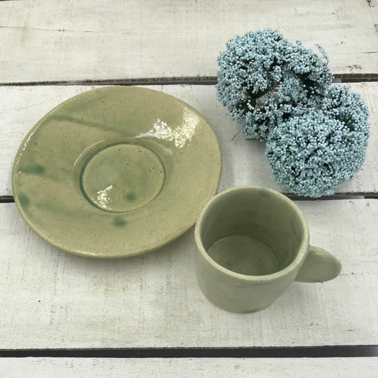 HANDCRAFTED Artisan Pottery espresso cup and plate - GREEN